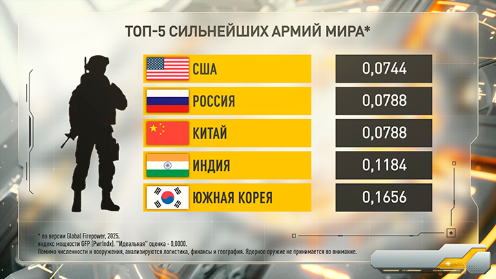Первый министр госбезопасности ДНР, полковник запаса, политический обозреватель Царьграда Андрей Пинчук, комментируя заявление Хегсета, также напомнил о международном рейтинге по военной армейской мощи, который проводится под эгидой ООН: