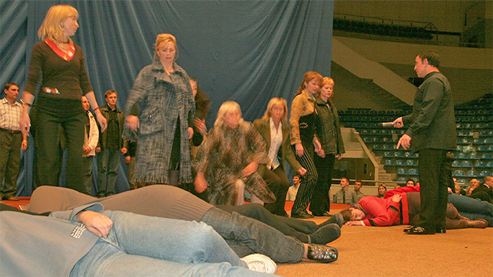 А год назад Анатолий Кашпировский триумфально вернулся на русскую сцену, так сказать. Его первый московский сеанс собрал около 300 человек, жаждавших избавиться от седины, рака, аллергии, бесплодия и даже лишнего веса. "Методика" поражала простотой: краткая беседа, человек падает на пол — и, по заверению "целителя", становится здоровым.