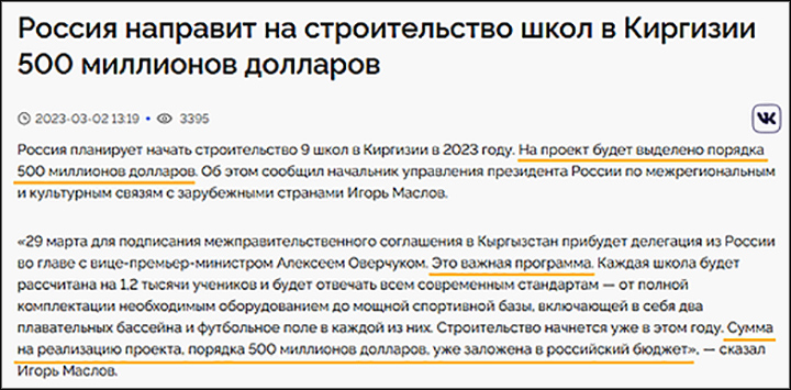 Полмиллиарда долларов на несколько школ в Киргизии – отдельная строка русского бюджета/Скриншот с сайта madeinrussia.ru