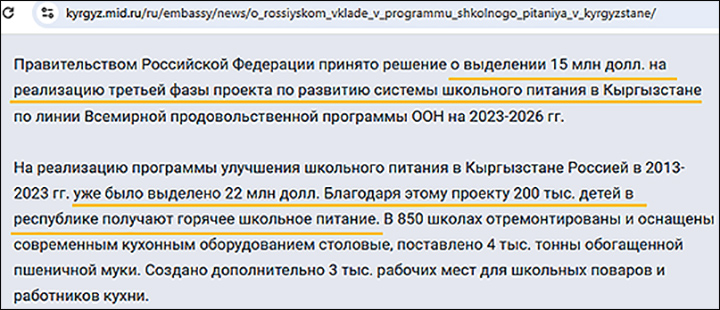 А с 2023 по 2026 год мы решили выделить на питание киргизских школяров ещё один транш – 15 млн долларов.