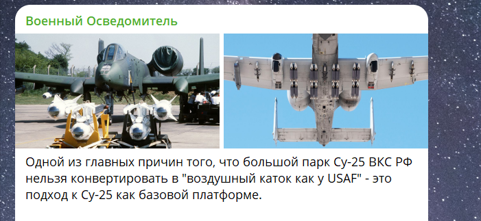 A-10 "Тандерболт II" — один из наиболее уродливых самолётов, какой только видело небо, но при этом один из наиболее эффективных. Скриншот с ТГ-канала "Военный Осведомитель"
