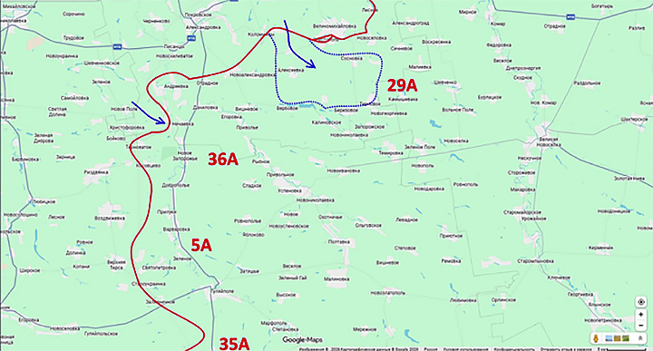Удар наносился по сходящимся направлениям, в общем – на Успеновку, что должно было вызвать обрушение значительного участка нашей обороны и спровоцировать тяжёлый оперативный кризис в 36-й и отчасти 5-й армии.