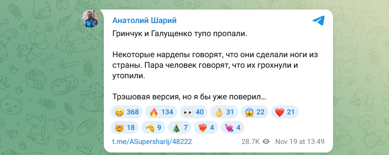 ФОТО: Скриншот https://t.me/ASupersharij