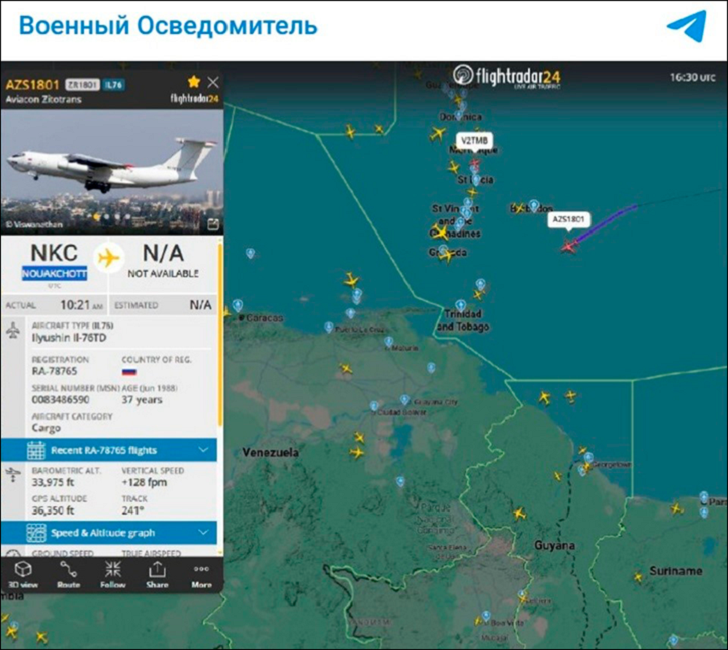 Ил-76ТД с загадочным грузом. Скриншот с ТГ-канала "Военный осведомитель"