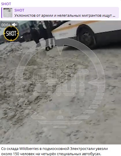 По данным канала SHOT, порядка 150 человек на четырёх специальных автобусах увезли со склада. Задержанные и есть потенциальные уклонисты от срочной службы и нелегальные мигранты. Как уточнил источник, 105 сотрудников Wildberries были доставлены в военкомат после задержания на складе. По данным информатора, часть из них может быть отправлена на срочную службу, если будет выявлено, что они подпадают под осенний призыв. Кроме того, в отношении некоторых задержанных составили протоколы за отсутствие дактилоскопии.