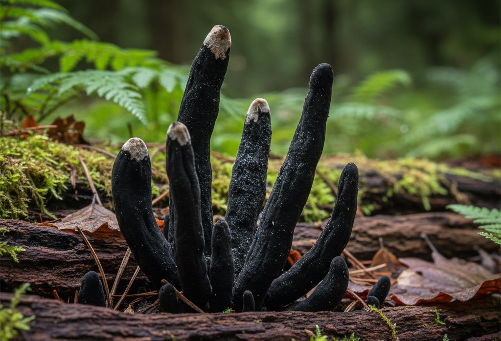 Еще один вид странного гриба - ксилярия многообразная. Её чёрные, твёрдые плодовые тела, торчащие из поваленных стволов, напоминают скрюченные, неестественно длинные пальцы мертвеца. Раньше ее использовали в народной медицине, однако подтверждения ее полезных свойств нет.