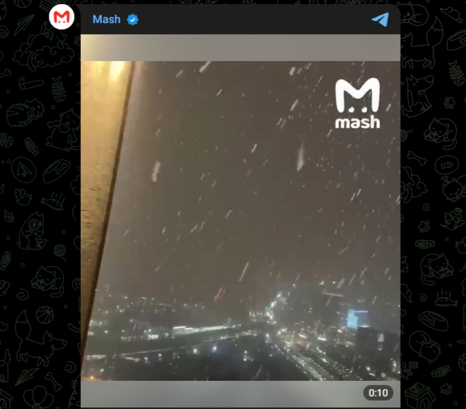 Жители Москвы и Санкт-Петербурга зафиксировали на видео первые снегопады. Кадры первых осадков были опубликованы в Telegram-канале Mash.