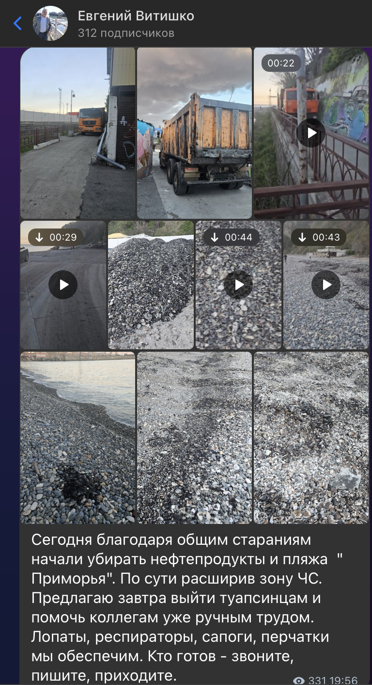 Экологи бьют тревогу. Кубанский активист Евгений Витишко назвал инцидент катастрофой. По его мнению, Краснодарский край не справится сам: нужны федеральные силы, режим ЧС на уровне страны, волонтёры и масштабная уборка.