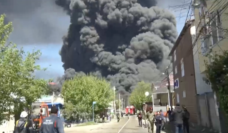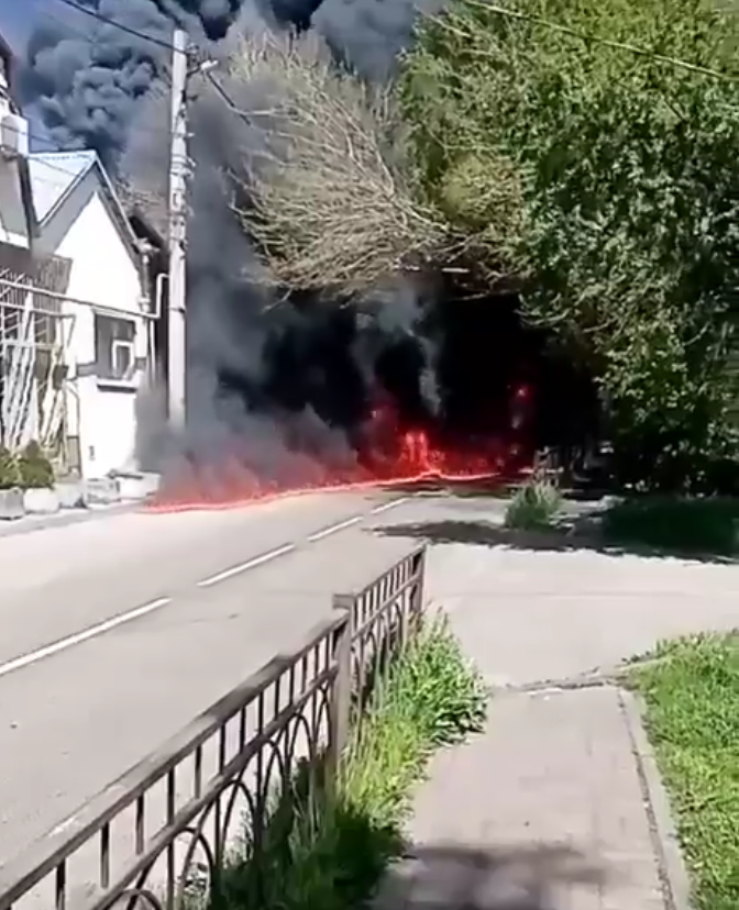После выброса нефтепродуктов из резервуара, некоторые дороги полыхают в Туапсе. Скриншот: Telegram