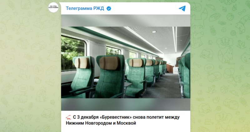 Билеты на возрожденный "Буревестник" уже поступили в продажу, сообщает тг-канал РЖД. Главная особенность новой версии поезда — использование современных двухэтажных вагонов. Это позволит поезду перевозить свыше 730 человек за один рейс. При этом время в пути останется около четырех часов.