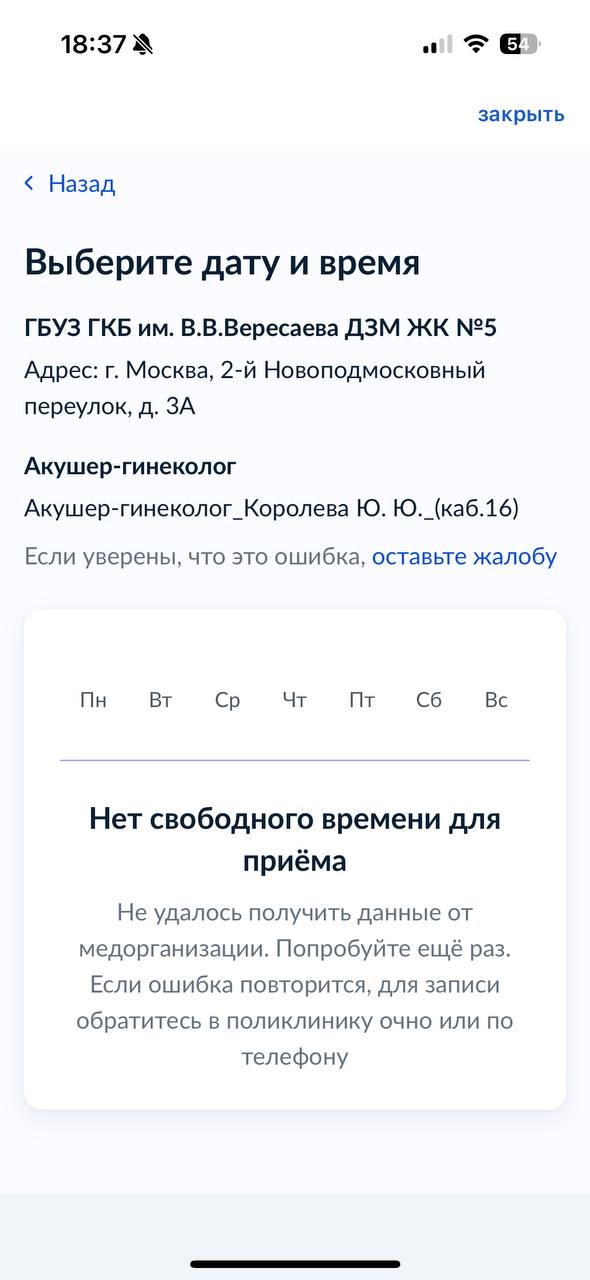 Запись к врачу отсуствует почти всегда. Скрин Ольги Пасько.