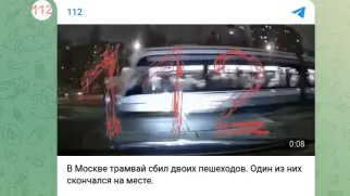 В Москве на видео попал наезд трамвая на двух пешеходов: один из них погиб