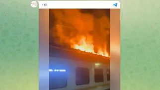 В Сети появились кадры пылающего вагона электрички в Подмосковье.