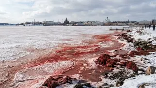 Кровавый лёд Хельсинки: Финский залив окрасился в оттенки красного