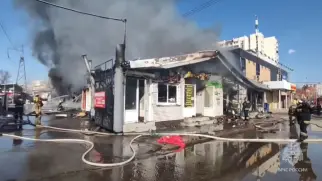 Появилось видео мощного пожара на рынке в Солнечногорске