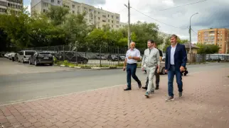 Глава муниципалитета Эдуард Малышев осмотрел работы по комплексному благоустройству дворовой территории на...