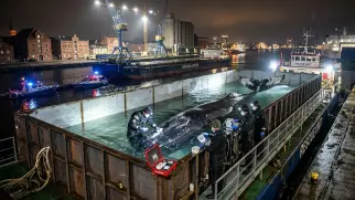 В Германии умирающего горбатого кита Тимми готовят к эвакуации в Атлантику